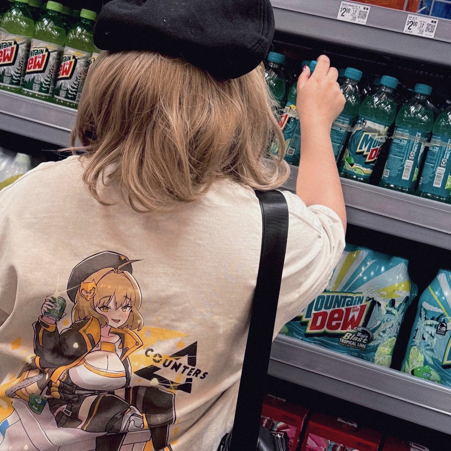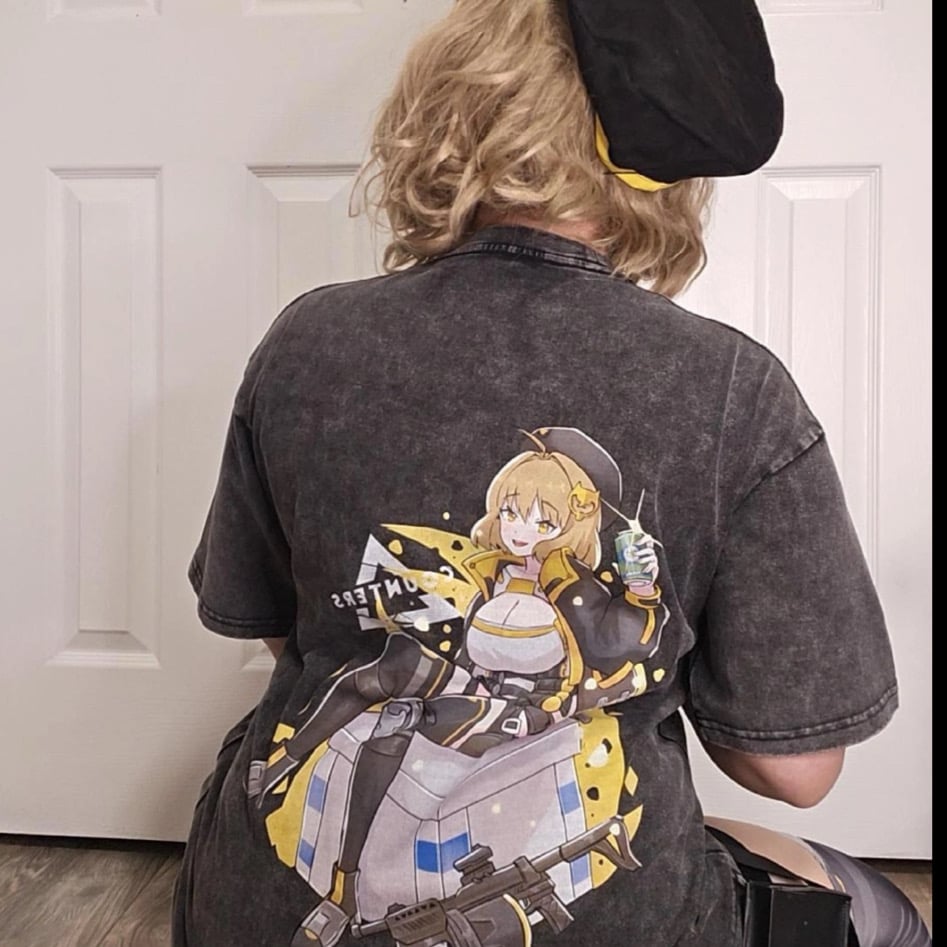 Wanna share a soda commander? Cut from 250 GSM heavyweight cotton and an Acid Wash Finish, Anis is ready to share all of her sodas with you! Each order will also receive 2 random doro stickers ($ 7 value) PLUS Nikke Union Arena and Weiss Schwarz cards for free!!!
